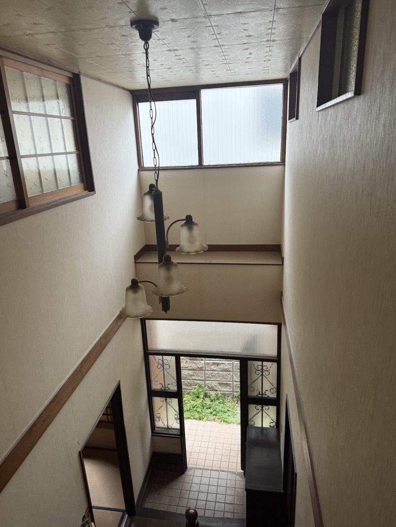 入り口入ると天井広い!シャンデリアかっこよくしたら良さそうじゃない?